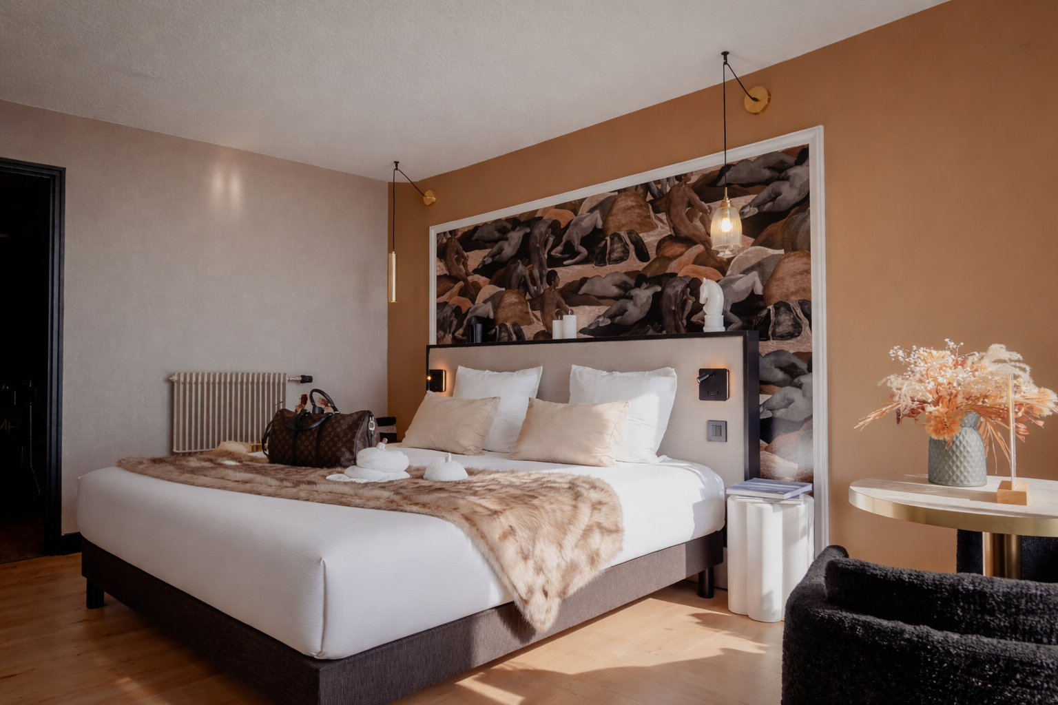 Our Ker Moor hotel in Saint-Quay-Portrieux offers you an atypical space to make your stay an inspiring one. In a troglodyte style, as it adjoins the rock, this 67 m² flat has a fully equipped kitchen, 3 bedrooms, 2 of which are en suite, and a shower room. Private terrace.